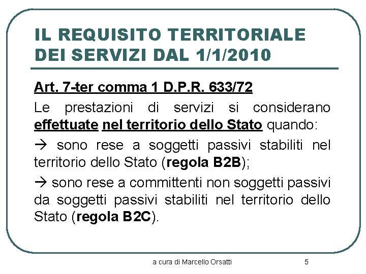 DECRETO DEL PRESIDENTE DELLA REPUBBLICA 26 ottobre 1972, n. 633 DECRETO DEL PRESIDENTE DELLA REPUBBLICA 26 ottobre 1972, n. 633 - Normattiva DECRETO DEL PRESIDENTE DELLA REPUBBLICA 26 ottobre 1972, n. 633 Istituzione e disciplina dell'imposta sul valore aggiunto. (Ultimo aggiornamento all'atto pubblicato il 28/02/2022) (GU n.292 del 11-11-1972 - Suppl. Ordinario n. 1) vigente al 24/04/2022 Articoli Art. 17 c. 6 lett. a DPR 633/1972 - studioeg-commercialista.it Art. 17 c. 6 lett.a D.P.R. 633/1972 - L.S. 2015 (l.190/2014 art. 1 c.629) - art. 199 Dir. 2006/112/CE La Legge di Stabilità 2015 ha recepito alcune parti della Direttiva CE 112/2006 in cui si prevede l'allargamento della possibilità di rendere passivo dell'imposta sul valore aggiunto il soggetto passivo dell'operazione.