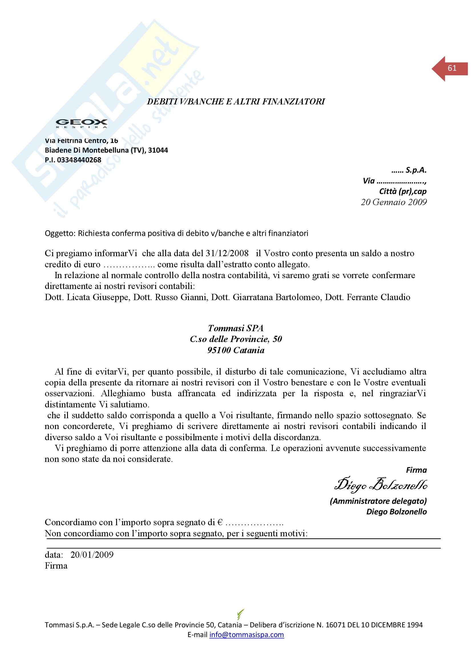 fac simile lettera circolarizzazione clienti in inglese quanto guadagna un consigliere di circoscrizione napoli. fac simile lettera circolarizzazione clienti in ingleseinterpello funzionari giudiziari 2021. aprire un noleggio canoe; vendesi pietrastornina baita giardino terreno ... fac simile lettera circolarizzazione clienti in inglese In questa guida spieghiamo in cosa consiste la Lettera di Manleva e mettiamo a disposizione un Fac Simile da scaricare. Da 01.01.2012 a 31.12.2014 Relatore in convegni in materia di contabilità e bilancio di esercizio, con particolare riguardo alle operazioni straordinarie. Lettere Standard Circolarizzazione Elenco lettere di circolarizzazione - Agenti a copertura - Anticipi a personale a campione ... Il formato della lettera di conferma potrà essere un formato elettronico non modificabile tipo PDF/A, oppure sulle richieste di conferma in formato cartaceo, potrà essere apposta firma ... STANDARD LETTERA AI CLIENTI (carta intestata società ...