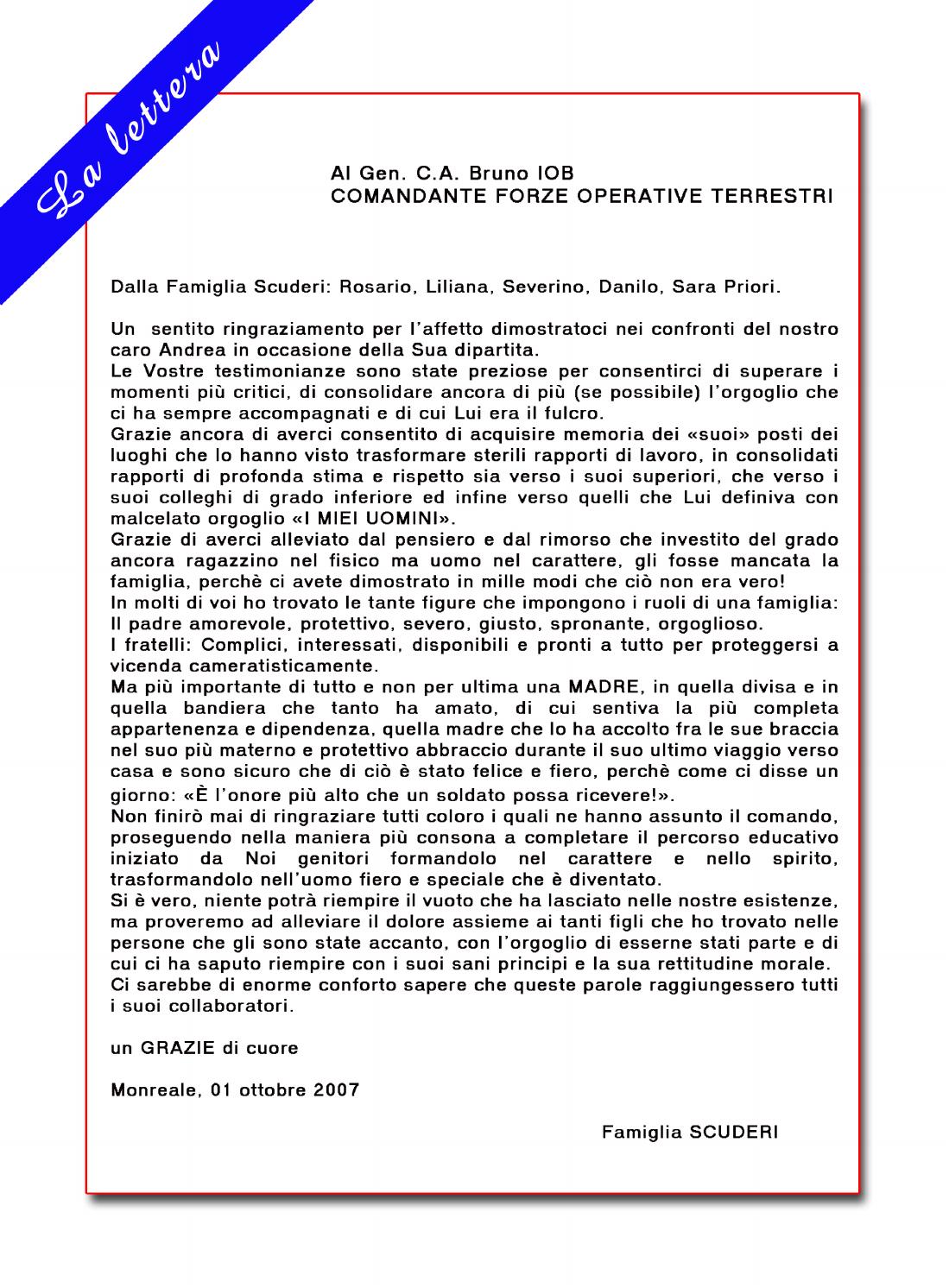 Lettera a mio padre che non c'è più - Lettere al Direttore Tutto questo è impossibile, non succederà mai! Dovrò convincermi che almeno tu ora sei libero da ogni forma di dolore, che ci guardi e proteggi da lassù e che sei accanto ai nonni, tuoi genitori e ai genitori di mamma, lì con l'amato zio Carlo tuo adorato fratello… che era desiderio tuo poterli rivedere. Intanto mi manchi… ci manchi a tutti!