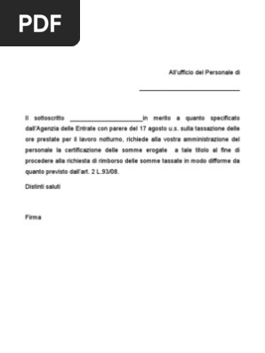 Attestazione notturni: procedura e modulo - PMI.it Il datore di lavoro deve fornirle l' attestazione delle notti effettuate attraverso una specifica procedura. Nel dettaglio, deve utilizzare il modello LAV-US per effettuare la comunicazione sul... Richiesta esonero lavoro notturno - Moduli.it Come detto entrambi i documenti presenti in fondo alla pagina sono disponibili in formato DOC, dunque editabili mediante un comune programma di scrittura. È possibile scaricare la lettera per esonero lavoro notturno e poi redigere il testo a mano oppure si può compilare il testo al pc e poi stampare la lettera già completa di tutte le informazioni. Lavoro notturno, la definizione e i chiarimenti dell'INL Il lavoro notturno è disciplinato dal D.Lgs. 8 aprile 2003, n. 66 (Attuazione delle direttive 93/104/CE e 2000/34/CE concernenti taluni aspetti dell'organizzazione dell'orario di lavoro) e dalla contrattazione collettiva cui la legge fa rinvio. Lavoro notturno, la definizione e i chiarimenti dell'INL: perché è importante inquadrarlo Carabinieri, assistenza disabile, esonero lavoro notturno a domanda Art. 55 comma 1 lettera f) del DPR 57 2022 - esonero militari che assistono un disabile dal lavoro notturno - norma aggiornata e sentenze. ... esonero, a domanda, dal servizio notturno per i dipendenti che assistono un soggetto disabile per il quale risultano già godere delle agevolazioni di cui alla legge 5 febbraio 1992, n. 104; ...