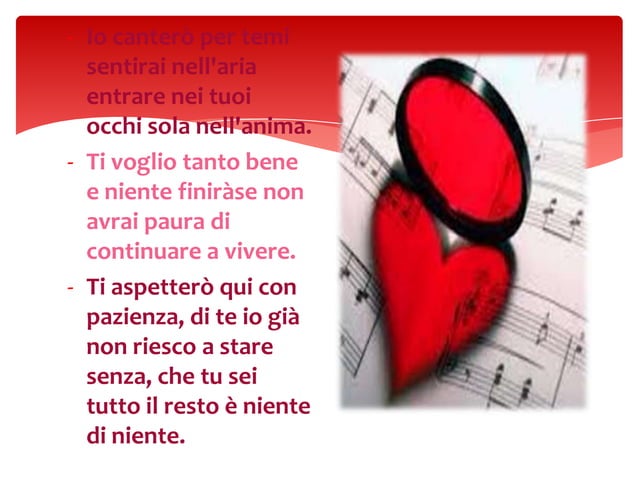 Mi manchi frasi: tutti i modi migliori per esprimere la ... Sep 27, 2021 · Non riesco a resistere senza di te… La tua sola presenza mi faceva vibrare l’anima… mi manchi amore mio! Mi manca non potere più gridare al mondo di esser la persona persona più... Lettere d'amore: 65 lettere romantiche da dedicare alla tua ... Sei nei miei pensieri ogni giorno e non riesco a pensare di stare senza di te. Mi rendi felice sempre e non posso stare senza di te. Non c’è nulla di te che non ami: amo i tuoi capelli, la tua voce, i tuoi occhi, il suono della tua risata e soprattutto il modo in cui mi sorridi. Sono la persona più fortunata al mondo per averti nella mia vita. Lettere d'amore - le vostre lettere più belle per la persona ... Segnalata da sme Amò non riesco a stare senza di te nemmeno per 1 istante.. è come vivere in un mondo senza aver nessuno scopo, senza capire il significato di vivere, senza saper sognare, senza saper amare.. mi manchi da morire non riesco ad immaginarmi senza te!!!